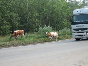 Onderweg raken we ook nog verzeild in een file van 28km. Er zijn twee wagen frontaal op elkaar geklapt. Later hoor ik dat Joris heeft gezien dat er nog iemand in de auto zat. De andere groep reed een eind achter ons en die vertelden dat deze persoon toen zij passeerden onder een wit laken op de straat lag. Dit zijn geen leuke dingen om te zien, maar het verbaasd me toch wel dat we niet meer ongelukken zijn als je de algemene Russische rijstijl in ogenschouw neemt.