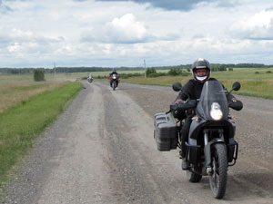 Vandaag kwamen we eigenlijk bij toeval op de oude M51 terecht tussen Omsk en Novosibirsk. Dat was fantastisch rijden, zeker toen de smalle lege weg onverhard werd. “Nog ruim 700km te gaan, wat doen we,” overlegden we. Na ongeveer 200km begon het te regenen en toen John en Ruud alle kanten uit begonnen te glibberen (teveel pk’s jongens? Hester en ik hadden er geen last van) hebben we toch het asfalt weer opgezocht. Het was een prachtige dag (850km) en we kwamen heel voldaan om 9 uur ‘s avonds in Novosibirsk aan.